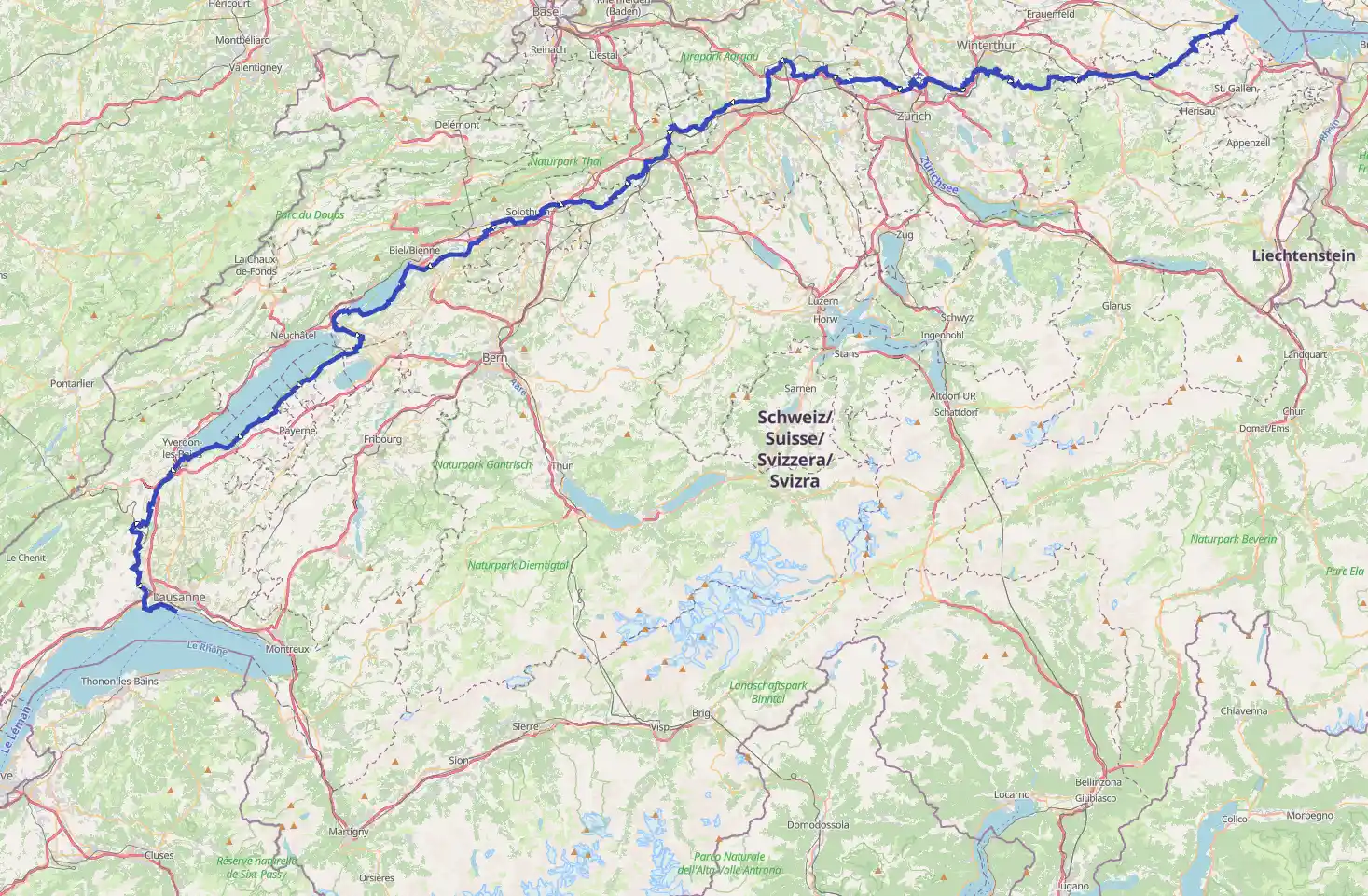Die gemütliche Velofahrt auf der vielfältigen Mittelland-Route verläuft auf zumeist motorfahrzeugfreien Wegen, entlang von Seen und Flüssen, durch weite Ebenen und stille Täler, Städte und Dörfer, Industrie und Landwirtschaft.